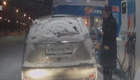 小車行駛中遇“天外飛冰” 擋風玻璃被砸粉碎