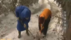 民間牛人雪地當(dāng)畫卷 雙腳走出“哆啦A夢”
