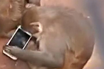 游客手機掉進猴山 “大圣”把玩愛不釋手