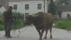 印度瘋狂犀牛突襲公路車輛 司機(jī)慌忙駕車躲閃