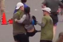 男子抱虛脫女選手躍過馬拉松終點