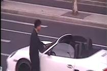 實(shí)拍奔馳女司機(jī)高速急剎車 引大掛車猛撞