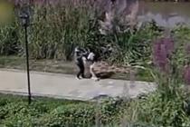 司機(jī)橫車擋住車流 幫助老太過馬路