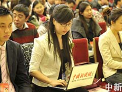- 中新網(wǎng)報(bào)道:2010-3-14 09:57中新網(wǎng)記者吳歆在第一排占據(jù)了一個(gè)黃金位置,這幾天她和中新社兩會報(bào)道組的數(shù)十名同事一起,奔波于各個(gè)會場、駐地。今天終于迎來了兩會報(bào)道的最后一戰(zhàn)。