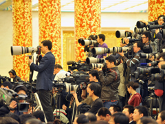 - 中新網(wǎng)報(bào)道:2010-3-14 09:48隨著人大的閉幕,記者們開始慢慢失去“紳士風(fēng)度”,攝影記者們?yōu)榱说玫揭粋(gè)好的機(jī)位,不斷的尋找機(jī)會往前“擠”。