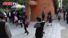 【解說】現(xiàn)場(chǎng)還有騎車達(dá)人,拉著自己的孩子,上演了一場(chǎng)瘋狂的“寶貝游記”