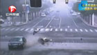 實拍兩男子騎摩托車等紅燈瞬間搶劫轎車副駕駛