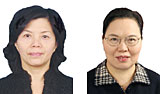 繆水娟(左),全國人大代表杭州高級中學校長、黨總支書記。 程惠芳,浙江工業(yè)大學經貿管理學院黨委委員、教授、博士生導師