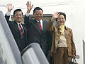 圖:江丙坤完成“經(jīng)貿(mào)之旅、緬懷之旅”揮手告別北京