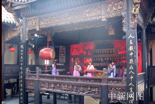 古戲臺上身著漢服的演員