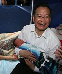 溫家寶看望地震災(zāi)區(qū)群眾 號(hào)召"挺起不屈的脊梁"