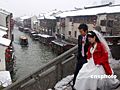 參加救災(zāi)的一對電網(wǎng)職工電線桿下舉行婚禮(2月23日15:26)