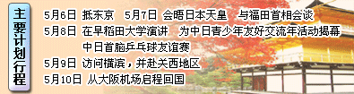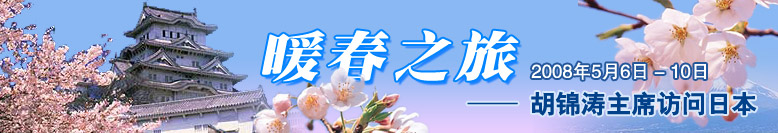 5月6日-10日,中國國家主席胡錦濤對日本進行了為期五天的國事訪問。[詳細]