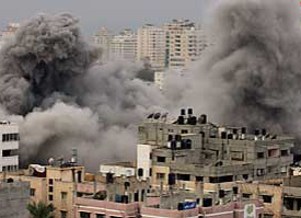 第十九天 以軍飛機在夜間共發(fā)動60多次空襲,攻擊重點集中在靠近埃及邊境的武器偷運地道。爆炸聲和機關槍猛烈開火的聲音14日響徹整個加沙城。目前已有上千名巴勒斯坦人死亡,4700人受傷。以軍14日早上還在加沙城中心地帶上空投擲了數(shù)十枚煙霧彈。另外,以色列北部14日遭到從黎巴嫩南部邊境地區(qū)發(fā)射的火箭彈襲擊,以方隨即還擊了4枚火箭。消息稱,以色列高官15日將赴埃及進行;鹫勁,而哈馬斯稱已經(jīng)接受埃及;鹛嶙h。【詳細】