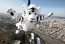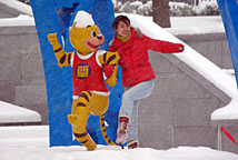 與卡通虎合影