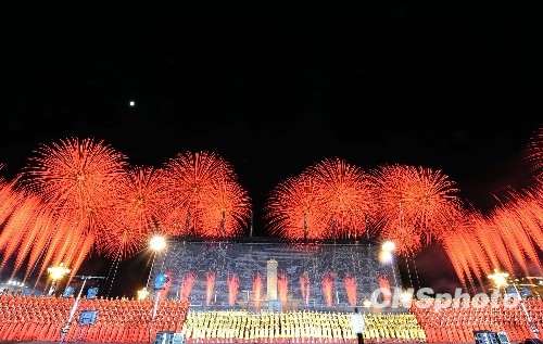 圖:國慶聯(lián)歡晚會上的絢爛煙花