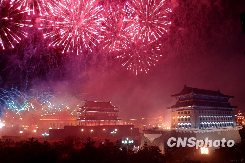 圖:天安門廣場上空璀璨的煙火