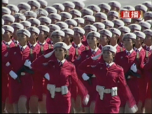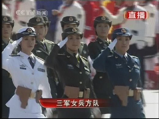圖:女兵方隊(duì)接受檢閱