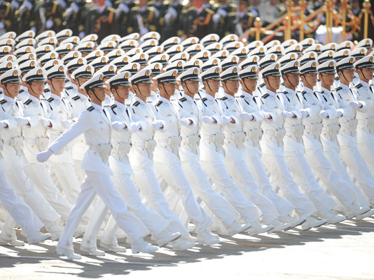 圖:三軍儀仗隊(duì)行進(jìn)受閱