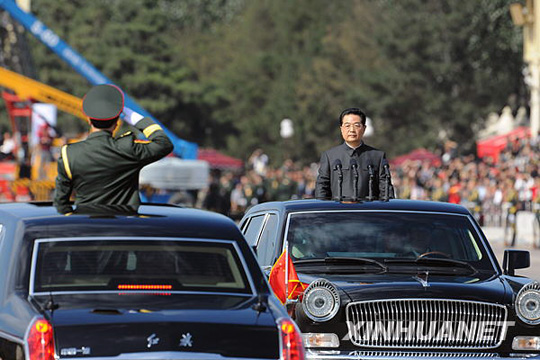 國(guó)慶閱兵:胡錦濤乘紅旗車(chē)檢閱
