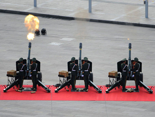 國(guó)慶慶典禮炮在天安門(mén)廣場(chǎng)鳴響