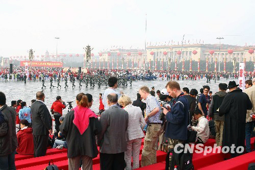 圖:外國(guó)游客爭(zhēng)睹閱兵風(fēng)采