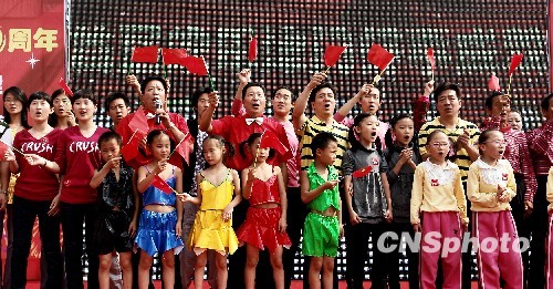組圖:重慶市民街頭歡慶祖國(guó)60華誕