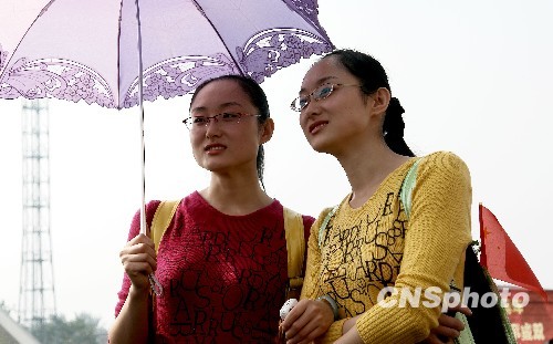 圖:天安門朗日當(dāng)頭照 觀禮臺(tái)嘉賓忙遮陽(yáng)