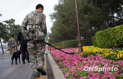 圖:國(guó)慶慶典前搜爆犬在行動(dòng)