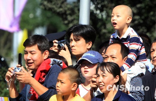 圖:北京市民爭(zhēng)睹國(guó)慶閱兵