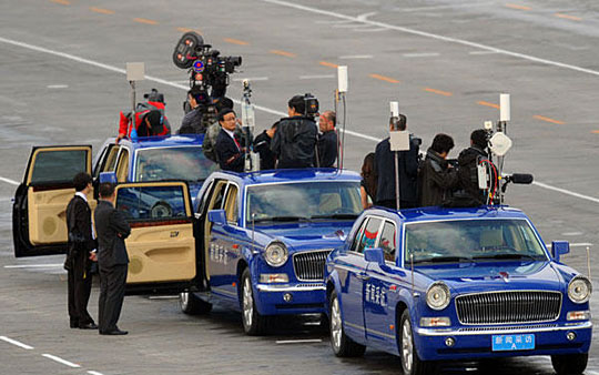 圖:國(guó)慶盛典現(xiàn)場(chǎng)的紅旗牌采訪車