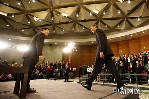 圖:胡錦濤與奧巴馬北京共同會見記者