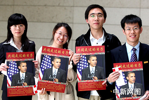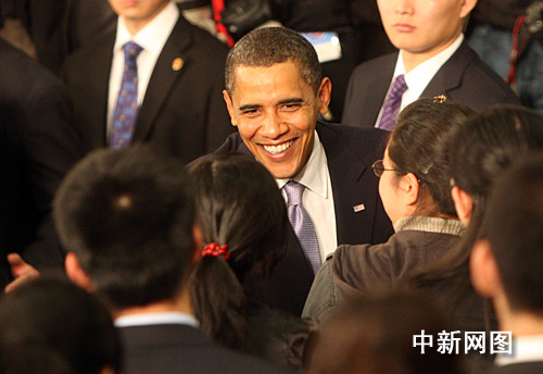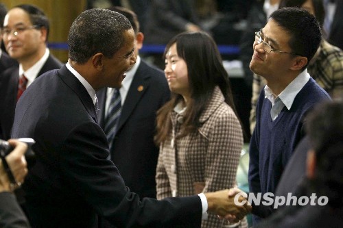 圖:美國總統(tǒng)奧巴馬與中國青年“親密接觸”