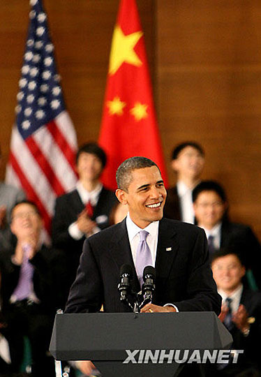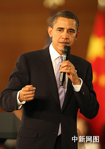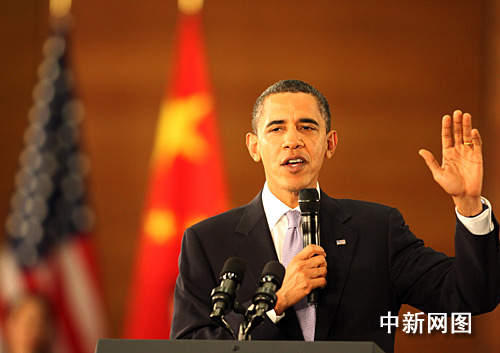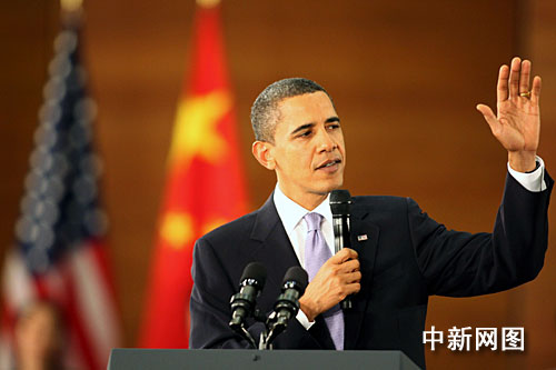 圖:美國總統(tǒng)奧巴馬在上海發(fā)表演講