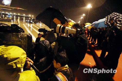 圖:美國總統(tǒng)奧巴馬抵達上海 記者雨中等候