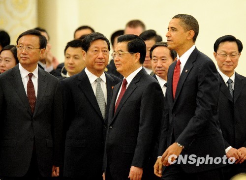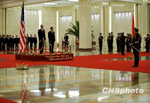 圖:胡錦濤舉行儀式歡迎美國總統(tǒng)奧巴馬訪華