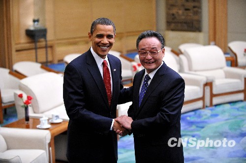 圖:吳邦國會見美國總統(tǒng)奧巴馬一行