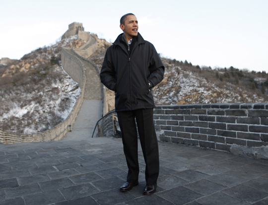 圖:奧巴馬贊嘆中國長城雄偉