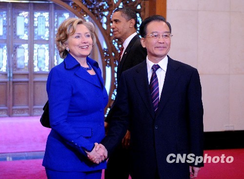 溫家寶會見美國國務(wù)卿希拉里·克林頓