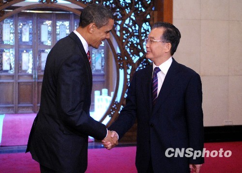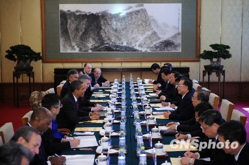 圖:溫家寶總理會見美國總統(tǒng)奧巴馬一行