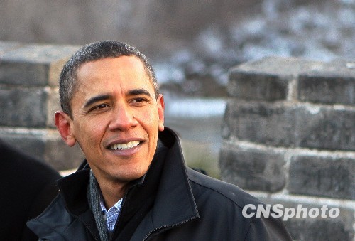 圖:美國總統(tǒng)奧巴馬游覽八達嶺長城