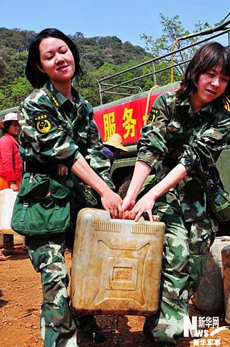 組圖:廣西旱區(qū)的送水女兵