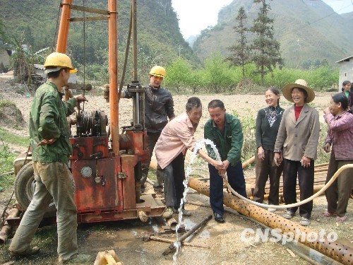 廣西河池旱災(zāi)嚴(yán)重 企業(yè)鉆井尋水惠民眾