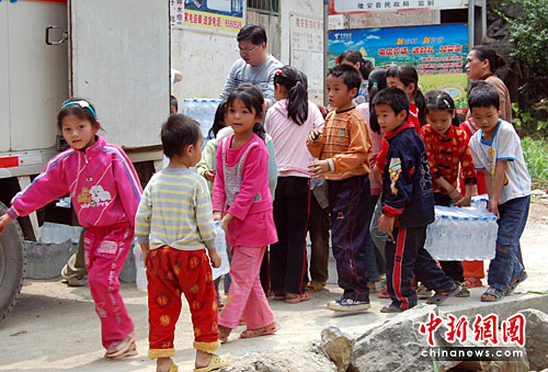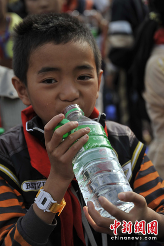 李連杰為云南旱區(qū)受災(zāi)民眾送上礦泉水