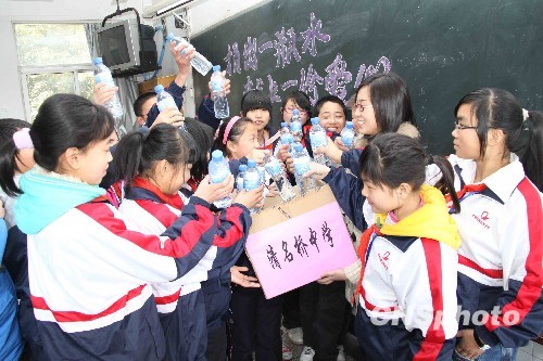 圖:江蘇無錫中學(xué)生開展向?yàn)?zāi)區(qū)捐水活動(dòng)