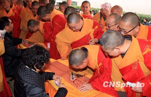 圖:拉薩哲蚌寺為中國西南旱災(zāi)地區(qū)捐款
