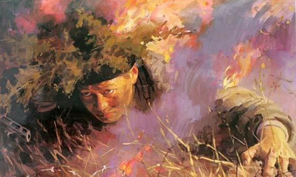 第二天11點(diǎn)鐘的時(shí)候,敵人胡亂發(fā)出一顆燃燒彈,忽然落邱少云身旁,燒著了他身上的茅草.這時(shí)候,他要站起來,是完全可以把火撲滅的.邱少云想起,出發(fā)前,首長交代要嚴(yán)格遵守埋伏紀(jì)律.邱少云更加知道,要是他爬起來,埋伏在這里的幾十位戰(zhàn)友,就會(huì)被敵人發(fā)覺,就有可能被敵人消滅,這樣就破壞了原定的戰(zhàn)斗計(jì)劃.他決定躺著不動(dòng).我軍陣地上的指揮員,看到埋伏地點(diǎn)起火,連忙命令向敵人開炮,擾亂敵人的注意力.這時(shí)候,邱少云還是沒有爬起來撲滅自己身上的火.烈火繼續(xù)燃燒著他的身體.邱少云咬著牙,小聲向靠近的戰(zhàn)友李士虎說:"勝利是我們的,但是我不能完成爆破任務(wù)了,交給你去完成吧!"說完,他把被烈火燒著的身體更緊地貼到地上,一直到犧牲,也沒動(dòng)一下.李士虎急得咬破了嘴唇,眼睛里像要冒火.但是,他和邱少云一樣,和埋伏在那里的所有戰(zhàn)友一樣,想到了整體,想到了整個(gè)戰(zhàn)斗的勝利,眼看著他親愛的戰(zhàn)友壯烈犧牲;忍受著內(nèi)心的仇恨,焦急地等待著戰(zhàn)斗的信號(hào).