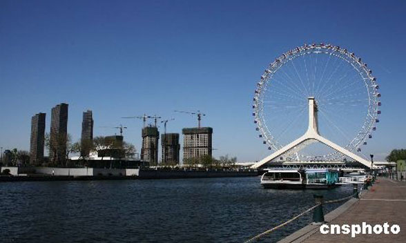 天津之眼即天津永樂橋摩天輪,2007年12月17日正式合龍,使氣勢恢弘的“天津之眼”完全“睜開”,為津城再添一景。永樂橋摩天輪的直徑為110米,到達最高點時,距離地面的高度可達到120米左右,相當于35層樓的高度,能看到方圓40公里以內(nèi)的景致,是名副其實的“天津之眼”。單從高度角度來看,天津之眼超越了大名鼎鼎的倫敦之眼而躍居世界第一。穩(wěn)坐于永樂橋之上的天津之眼作為世界上唯一一座建在橋上的摩天輪,其巧奪天工和奇思妙想確是當之無愧的“世界第一”。
