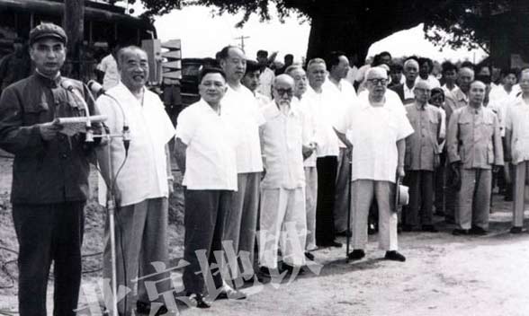 圖:1965年7月1日,國家領(lǐng)導人朱德、鄧小平、彭真、李先念等同志參加北京地鐵的開工典禮。
