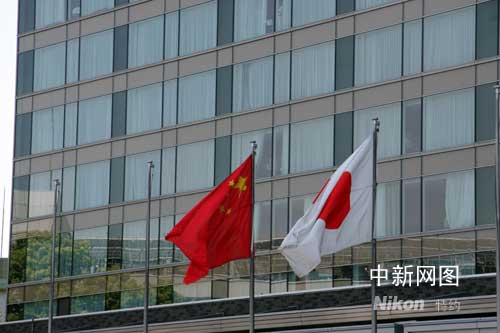 日本酒店懸掛中日國旗迎接胡錦濤訪日
